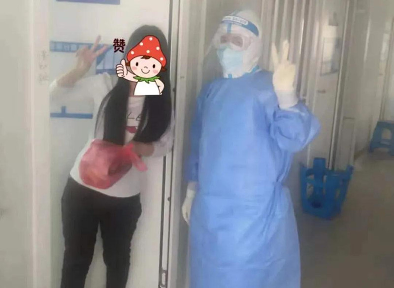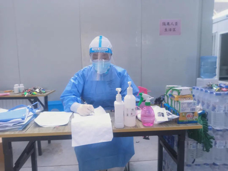 在隔离点,工作人员穿着厚厚的防护服,口罩、面屏遮挡下,根本看不清脸,彼此更不认识。但每次给隔离人员分发日常用品、采集咽拭子时,他们都会贴心地嘱咐一句“辛苦啦,你们也要照顾好自己”。有的还美美地跟工作人员合影留念,他们说:“不为别的,就想把这份情谊记下。”