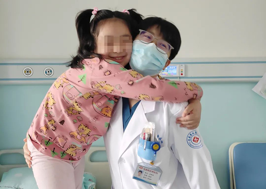 暖心故事:6岁的小涵是过敏体质,再加上小孩子“管不住嘴”,导致她近2年胃炎反复发作,久而久之,成了消化内科的“老患者”。一提到小涵这位“老患者”,科室医护人员都分外疼惜。每次她来治疗,大家都会给予她暖心呵护,告诉她要养成良好的饮食习惯,不要吃这个、不要吃那个,如妈妈般跟着叮嘱。渐渐地,小涵和大家熟络了起来,也变得越来越活泼了。在过去的一年里,小涵的体重也增长了5kg。今年3月9日,小涵又因胃疼住院治疗5天。3月14日,小涵要出院了。临走前,她高兴地来到医生办公室,走到韩兆香副主任身边,稚声嫩气地说:“医生阿姨,我要出院啦,抱一抱。”就这样,医路童行的一大一小在护士站前留下了这温馨的合影,还添加了微信。看着小涵蹦蹦跳跳走出医院的背影,大家满眼欢喜,在心中默默祝福:愿她健康成长,快乐生活。