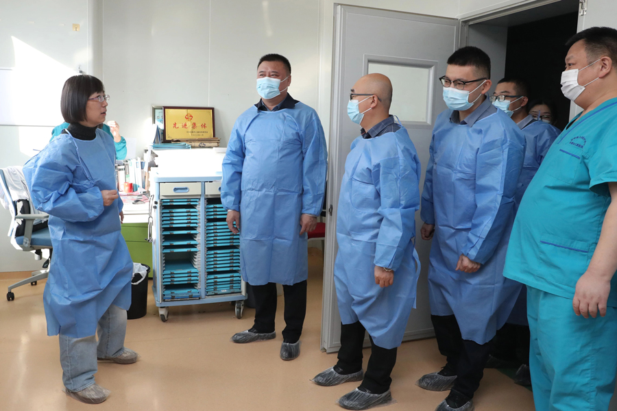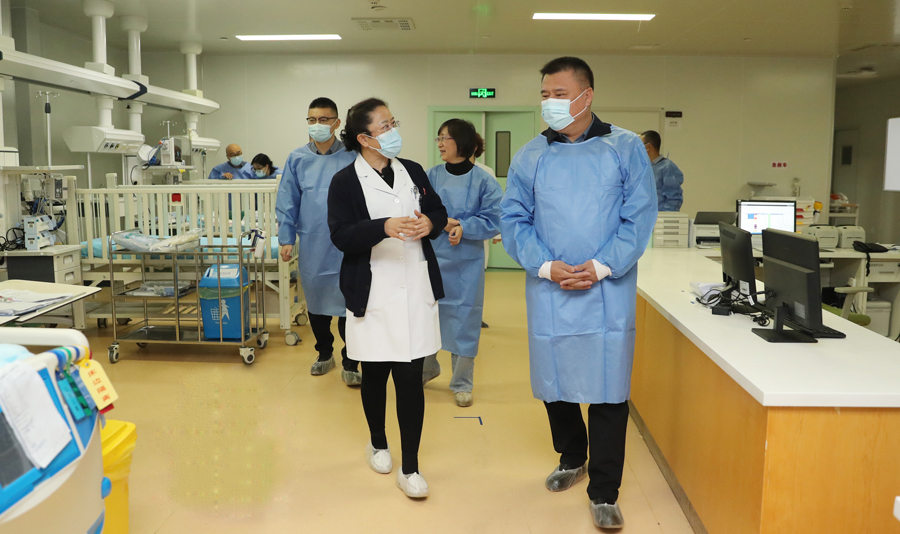 座谈会后,在张瑞忠书记、黄艳智副院长的陪同下,王世禄书记一行参观了蜜桃视频 ,并深入内镜室、静点中心、重症监护室,针对各科室工作开展的具体情况进行交流。