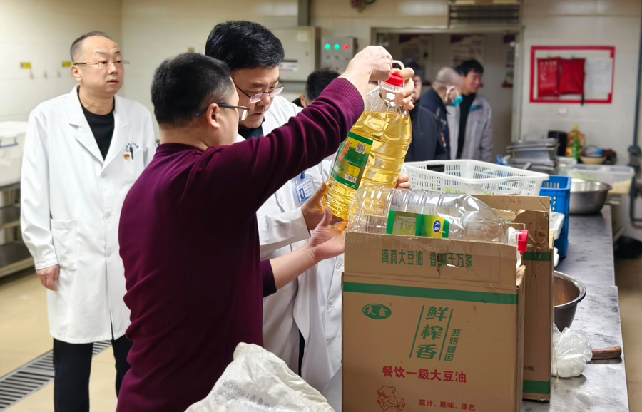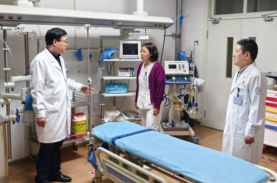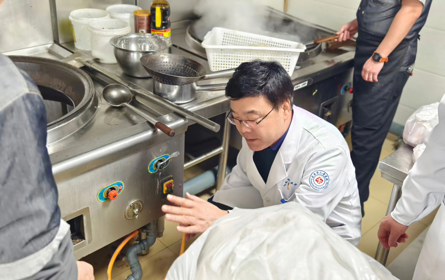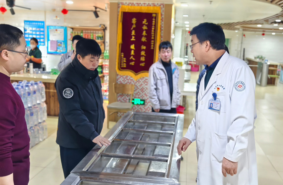 在急诊室,张书记详细了解人员的排班安排及设备的运行情况;对食堂,燃气安全及食品安全进行重点检查,并与工作人员进行交流,就用电安全、食堂卫生、操作流程及原材料采购注意事项等提出指导意见,要求科学管理、营养配餐,保证医护人员、患者及家属在节日期间也能吃出家的味道。在住培学员宿舍,于占新副院长详细了解了学员住宿管理情况,对用电安全、电器使用情况进行了相关检查,并重点强调宿舍假期的消防安全。