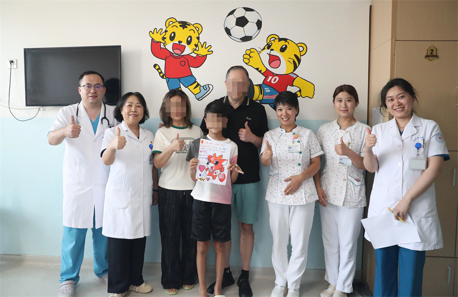 在病房里的时光,医护人员并未因语言不通而减少半分暖意。主管医生刘洋每日细心查房,密切关注小杰克的病情变化;主治医师王若琪用英语与小杰克进行简单的日常交流,用各种方式降低小杰克的环境陌生感;护士长田地则在生活和饮食上加以关照,帮小杰克找到既可口又有营养的“美食”。大家的悉心照护皆如涓涓暖流,悄然滋润着小杰克,让他的陌生感与焦虑渐渐淡去,消融于温暖的守护里。