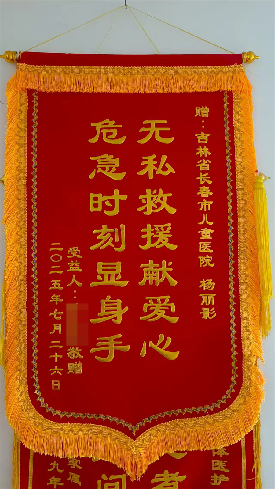 ▲ 为表感谢,杨丽影医生救下的患儿家属特地定制一面锦旗,邮寄到蜜桃视频 。