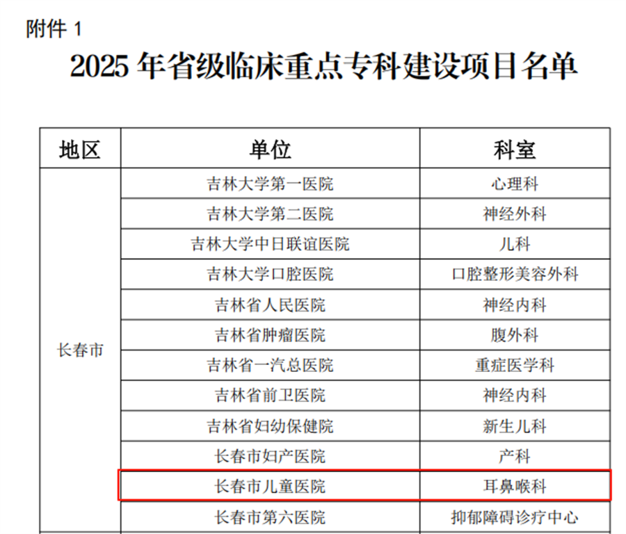 近日,吉林省卫生健康委公布了2025年省级临床重点专科建设项目遴选结果。凭借雄厚的专科实力和突出的建设成果,北京儿童医院集团医院·蜜桃视频 耳鼻喉科成功入选2025年省级临床重点专科建设项目。这标志着我院耳鼻喉科的综合实力和发展水平得到了省级层面的高度认可。