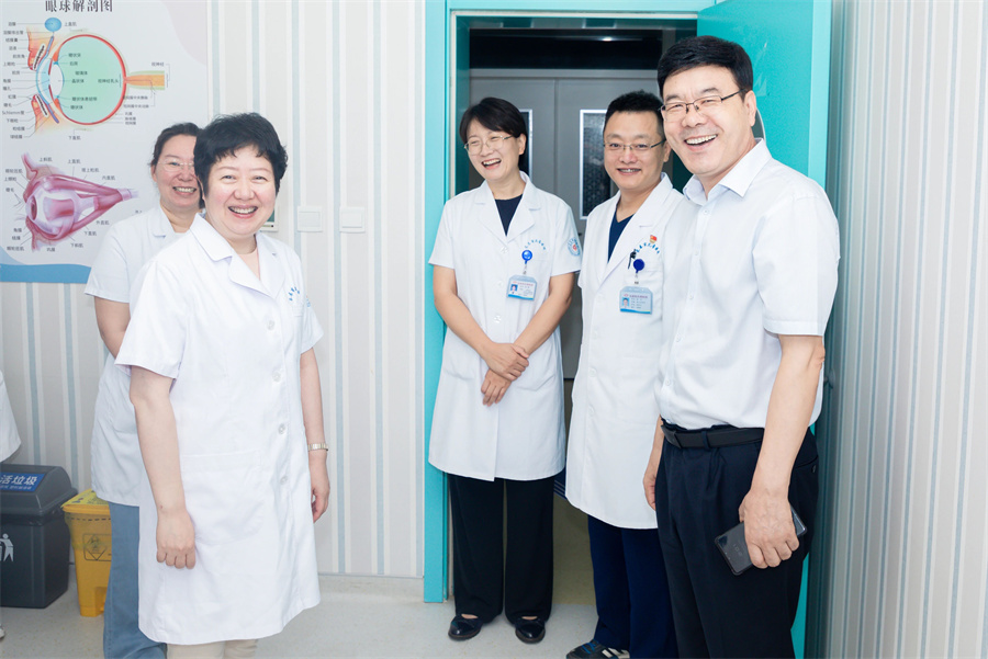 开诊前,医院党委书记张瑞忠、副院长杨小健与崔钊早已等候在诊室前。他们专程前来,代表医院向李莉教授送上诚挚问候与感谢。作为医院特聘眼科名誉主任,李莉教授多次北上支援,将国内顶尖的医疗技术带到东北,用仁心仁术为众多眼疾患儿点亮光明。院领导由衷地说:“您的每一次奔波,都是孩子的一份希望。”