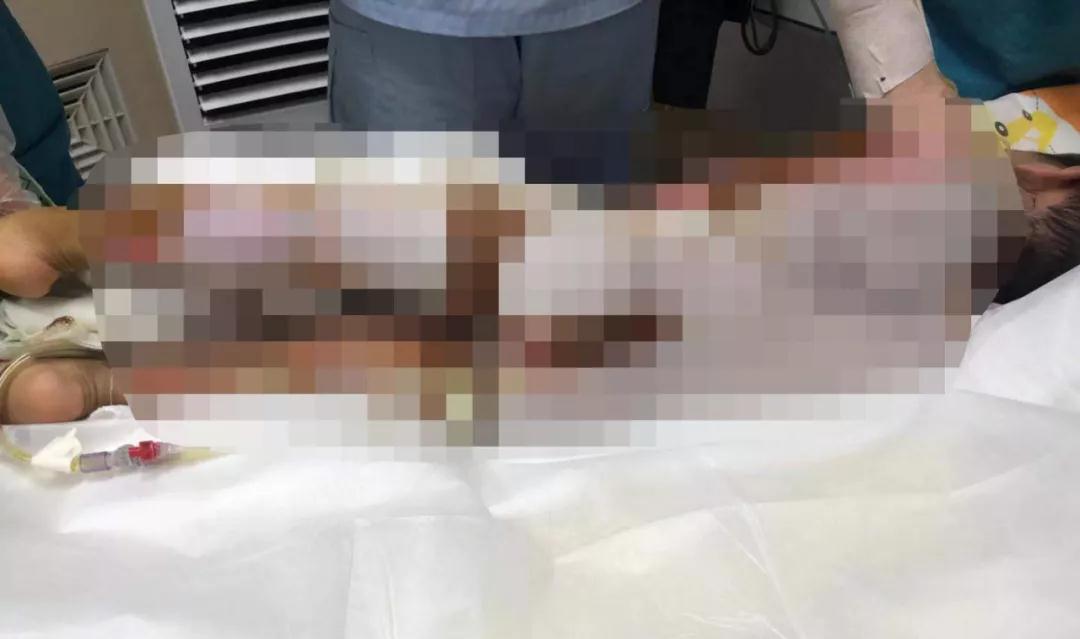 10月7日半夜,一阵阵孩子撕心裂肺的哭声响彻医院大厅,强强(化名)被紧急送进急诊科,当时,强强已经处于休克状态。根据家长讲述,孩子是不小心掉到了煮拉面锅里的。烧伤科主任康生军介绍,强强送到医院时,情况非常危险,烫伤面积达60%,属特重度烫伤。对于这么小的孩子来讲,相当于全身重度烫伤,其中深II度烫伤面积达40%,浅II度烫伤面积达20%。小小的身子,除了头部几乎全部烫伤。接诊后,医院立即进行一系列紧急救治,包括清理创面、吸氧、建立静脉通路、补液、纠正休克及离子紊乱、抗炎对症治疗等。