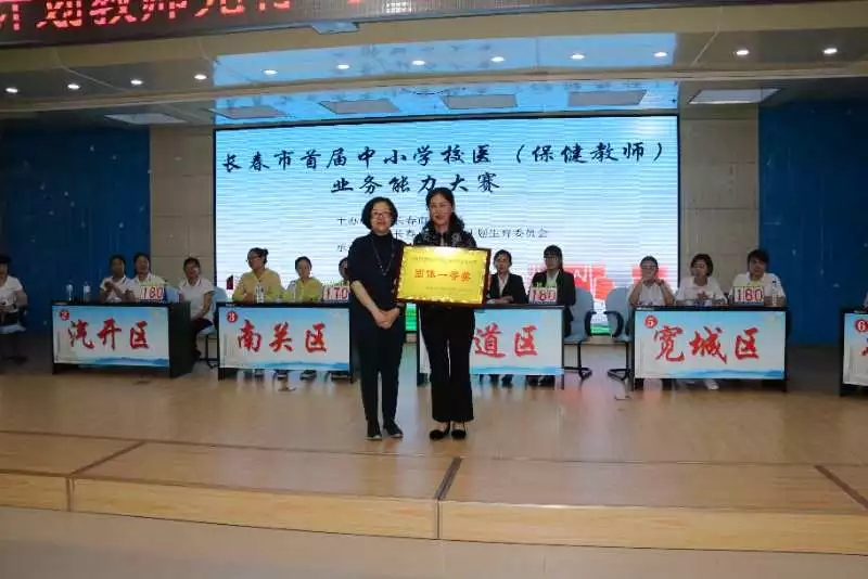 最终经过必答题、抢答题、风险题与实操题四轮激烈的角逐,汽开区代表队取得了第一名,南关区代表队与二道区代表队获得第二名,朝阳区代表队、宽城区代表队和德惠市代表队获得了第三名。市卫生计生委、市教育局和市儿童医院相关领导共同为各参赛队颁发了奖牌,同时为进入决赛的18位参赛选手颁发了《长春市校医(保健教师)业务能力大赛》获奖证书及奖品,为21位预赛表现突出的教师颁发了个人优秀证书。
