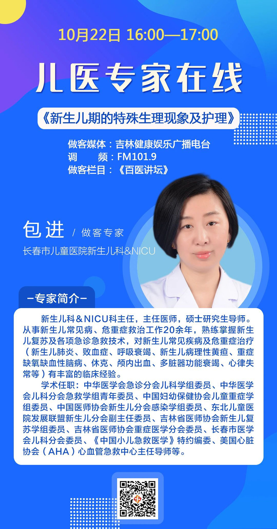 新生儿“怪事儿多”。新手爸妈一遇到新生宝宝发热、黄疸、腹泻就会紧张焦虑,特别是遇到体重下降、病理性黄疸、溢乳、假月经等情况,更手足无措。10月21日、22日,蜜桃视频 新生儿科&NICU科主任包进将做客吉林健康娱乐广播电台《百医讲坛》栏目,为家长们详细讲解新生儿常见问题的处理、新生儿期的特殊生理现象及护理知识,请家长及时关注。