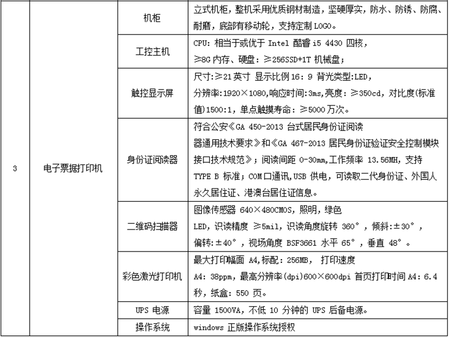 本次拟采购自助服务终端机共 3 类,具体规格、数量及技术要求如下: