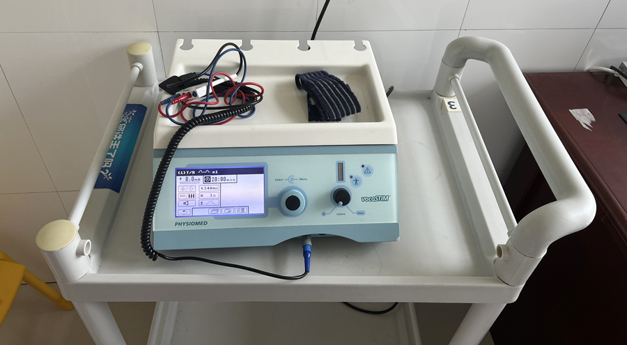经过皮肤对颈部吞咽肌群进行低频电刺激,通过特定的治疗电流对一些相关神经进行电刺激,提高构音活动、发声能力和吞咽能力,刺激电流沿着轴突进行传导,当传导至吞咽肌群及构音肌群时,这些肌群将依次被触发并收缩,加强构音和吞咽肌群的收缩运动功能,促进麻痹受损的神经复苏,达到言语和吞咽能力的建立。