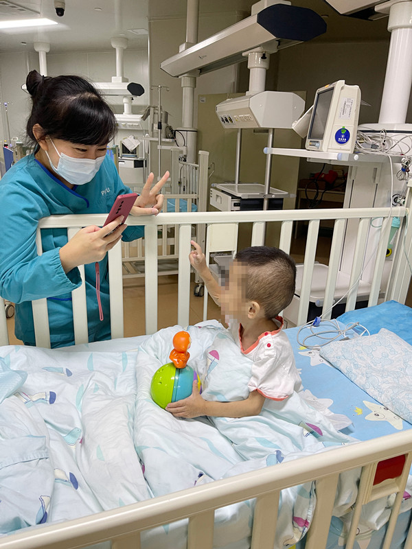 “小盼盼,爸爸妈妈可以通过这个视频看到你呦!”看到护士拿着手机拍摄,盼盼不时地用可爱的表情予以回应。“孩子患病初期,我整宿睡不着。通过监护探视云平台,每天都能看到孩子,我的焦虑也缓解了不少。”盼盼妈妈说,与女儿云端见面,成为她每天的期待。