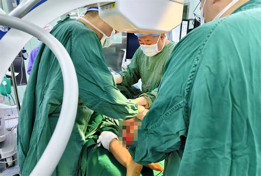 7月1日,在经过充分的术前准备后,高凤奇主任带领手术团队,在麻醉医生和手术室护士的密切配合下,为小旭实施了可延长髓内钉固定术。