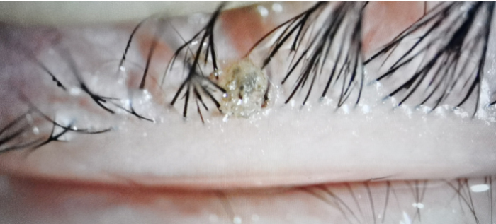 在眼科诊室内,副主任医师李娅娜仔细给妞妞做了检查,发现其睫毛上有淡黄色、皮屑样的小颗粒,无论怎么擦都擦不掉。在裂隙灯下,她发现这些小颗粒都是虫子,睫毛根部还挂着几十粒黑色未孵化的虫卵及白色孵化后的卵壳,仔细观察,数只白色的虫子在蠕动。这种小虫子就是阴虱。李娅娜先剪掉了妞妞的睫毛,在裂隙灯下用显微镊将其睫毛根部的虫子以及虫卵去掉。同时,局部用消炎眼药水抗炎处理。