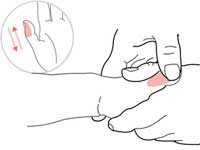 1.补脾经。一手将患儿拇指屈曲,另一手循拇指桡侧缘由指端向指根方向直推100~300次,健脾和胃,补益气血。