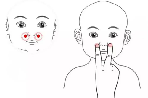 推擦鼻梁:用双手食指指腹自鼻梁两侧鼻翼处开始至鼻根部,来回推擦30下,至鼻梁发热,慢慢揉着一般能出来些鼻涕。