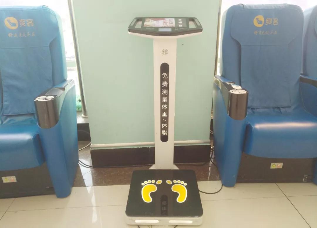在等待检查结果时,还可以在大厅给宝宝测一测体重和体脂,免费的哦。
