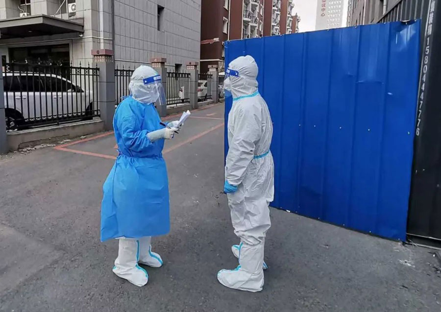 防疫初期,王胜男被分配到二道区负责全民核酸采样工作,为确保不漏一户一人,她日行万步。入户采样,没有电梯,只能靠双脚爬,在密实的防护服下,每天上下几千级台阶,满身大汗后出了楼门又要迎接大雪和寒风的“洗礼”,热汗瞬间变成冷汗,从里到外冰冷刺骨。