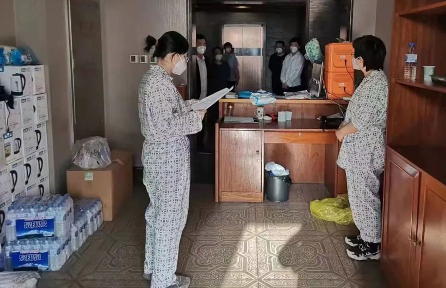 完成30多天的核酸采样任务后,王胜男即刻转战经开区云庐隔离宾馆,承担医疗组组长工作。白天,统筹全局,多方调度,为工作人员配备防护装备,为隔离人员做核酸采样,按时发放中药、消毒试剂、自测盒等医疗物资,及时转运确诊病例等;晚上,靠前部署,查补缺漏,总结及部署日常工作、填报档案信息、配送应急物资、组织医疗夜巡等。每项工作王胜男都亲自抓,忙碌到凌晨两三点钟已是常态。
