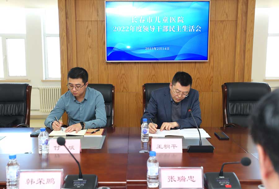 按照《长春市卫健委党组关于开好2022年度党员领导干部民主生活会的通知》要求,2023年2月14日下午,蜜桃视频 党委召开2022年度领导干部民主生活会。市卫健委督导组组长、基层卫生健康处处长王㭎平,督导组联络员付斌到会指导。会议由医院党委书记张瑞忠主持,领导班子全体参加会议。