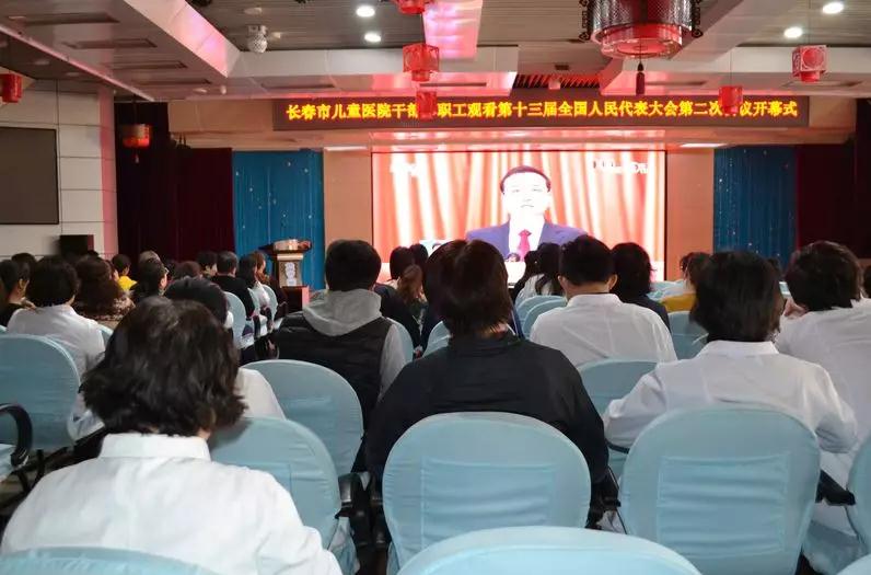 3月5日9时,蜜桃视频 多功能厅中,百余名干部、职工早早候在会场,等待观看“第十三届全国人民代表大会第二次会议开幕式”现场直播。参会人员有党员干部、机关后勤职工,还有部分临床一线下夜班的职工,他们不顾休息,特意来参会观看。伴随着会议议程,我院干部职工听取政府工作报告,感受会议氛围,关注国策民生,学习会议精神。