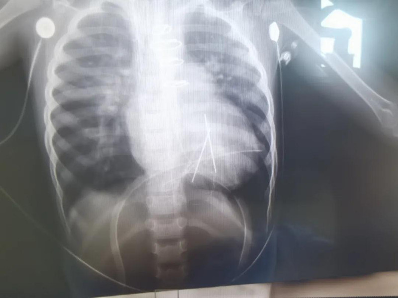 在蜜桃视频 小儿心脏病诊疗中心,杨明远医生初见馨馨印象极为深刻,4岁的孩子体重仅10.5公斤,由于心脏变大,她的胸骨被挤压得明显向前凸起。检查发现,馨馨心脏室间隔有直径17mm的缺损,导致左心室血液一部分流向右心室。同时,馨馨出生后动脉导管就未闭合,导致血液从主动脉分流到肺动脉。为了维持全身用血,左心室需要不断增加“劳动量”,而全身血液加上分流到右心室的血液最终都回到左心室,造成左心室严重增大,左室疏末径达到50.1mm,比正常成年人(正常成人左室疏末径为35-50mm)还要大。杨明远医生说,在先天性心脏病中,室间隔缺损比较常见,但像馨馨的心脏畸形严重到如此程度、对身体影响如此大的实属少见。
