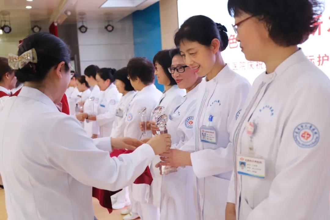 现场,院领导为31位达到30年护龄的护士颁发“爱心无限 奉献永恒”纪念奖杯。