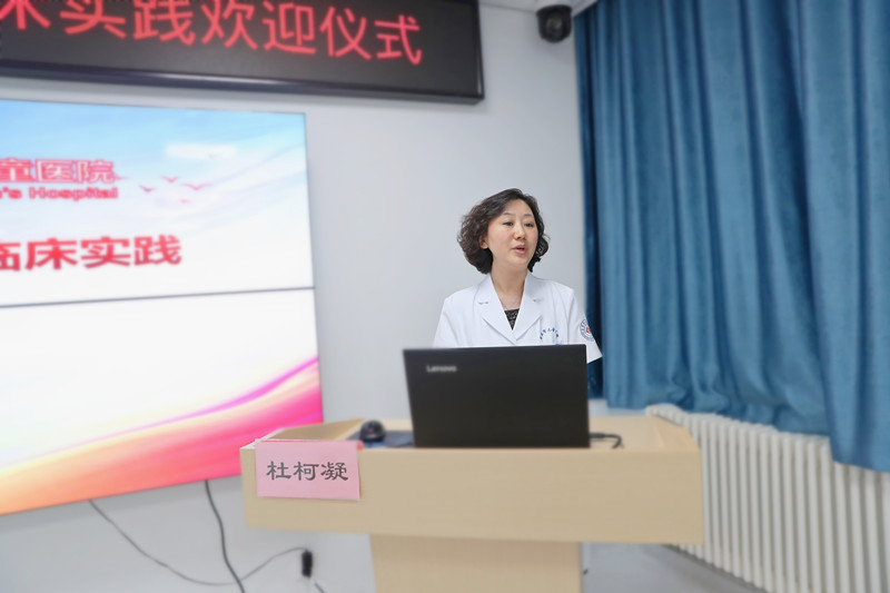 首先杜柯凝副院长致欢迎辞,她对学员的到来表示热烈的欢迎,同时指出蜜桃视频 作为中华护理学会儿科专科护士京外临床实践基地之一,始终坚持强化专科发展、加强基地建设,不断探索,勇于创新,加大专科人才培养力度,完善专科护士培养体系。基地将以中华护理学会专科护士培养方案为基础,结合医院护理学科优势以及儿科专业特长,为各位学员提供高标准、高质量的专科临床实践培训。最后她为各位学员送上了殷切的希望与祝愿,希望学员们在蜜桃视频 学习期间人文素养与专业综合能力协同发展,在收获专业知识的同时,拓宽专业发展思路,提高专科护理技术,学以致用,在专科护理的道路上不断前进。