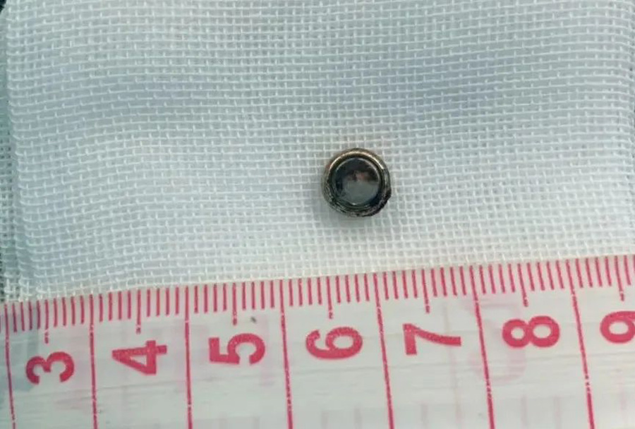 由于异物位置特殊,以及患儿不配合,门诊不能顺利取出异物,急诊全麻取出是最好的办法。在全麻下,耳鼻喉科副主任李莉萍经过20多分钟定位、钩取,才将异物取出来。取出的纽扣电池颜色发黑,患儿右侧鼻腔黏膜也已被腐蚀成了黑褐色。经过给药处置、鼻腔消炎等治疗,第三天患儿出院回家了,后期需定期复查。