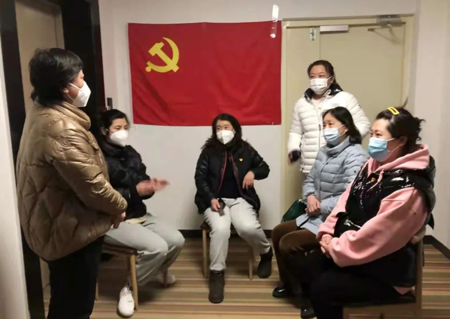 抗疫一线在哪里,临时党支部就建在哪里,党员作用就发挥到哪里。新一轮新冠肺炎疫情发生后,蜜桃视频 党委迅速行动,发挥党员先锋模范带头作用,以冲锋者的姿态,守护者的身份,筑牢疫线“红色堡垒”,让鲜红的党旗在抗疫一线高高飘扬。