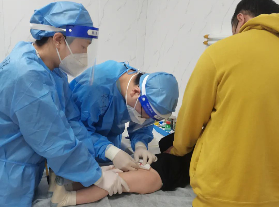 疫情出现之时,急诊团队严格按照医院要求,积极落实疫情防控措施,团队18人闭环管理在医院,坚守临床一线。身着密实的“大白”,隔着布满雾气的面屏,无论黑夜还是白天,不管清晨还是傍晚,在值守的各个点位上,急诊团队始终都在。接诊急危重症患者,抢救封控区、管控区、“黄码医院”转诊的危重患儿,处置烫伤和擦伤、切割伤、急性创伤、脑外伤等患儿;急诊预检接诊、流调,夜间急、门诊和住院患者及家长核酸采样,为急诊患者采集血标本,新生儿卡介苗试敏,药物治疗肌肉注射、灌肠等;支援发热门诊;为危重患儿做检查,收入院过程中全程陪同;做好政策宣传和指引工作……他们用精湛的医术、全心的呵护,让每一位来急诊就诊的患儿都得到最好的救治和妥善的安置。