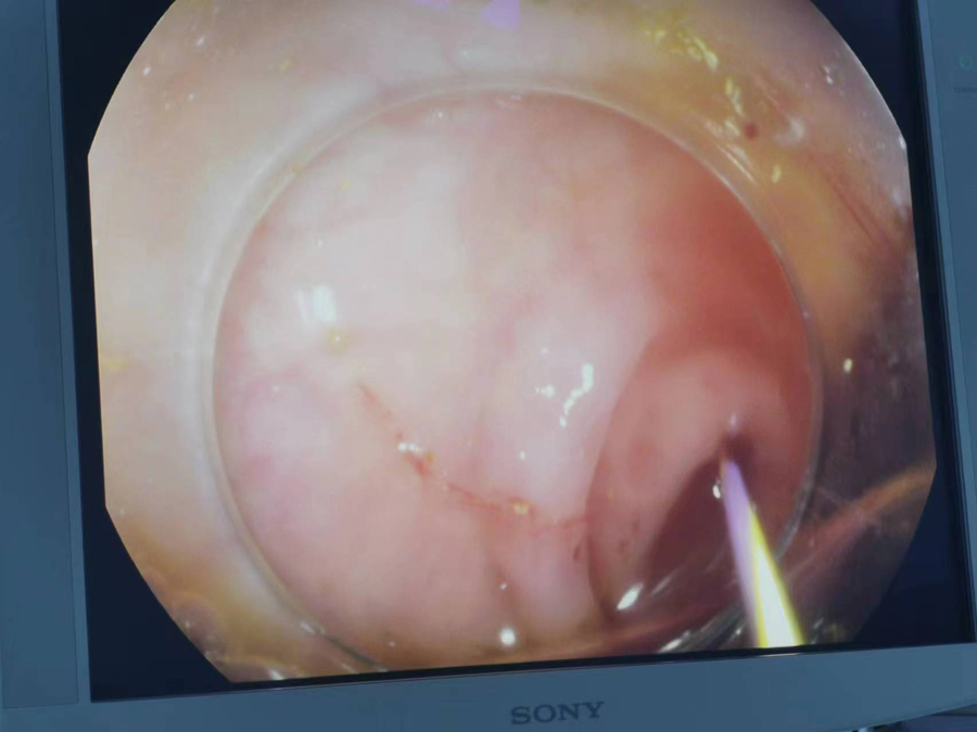 手术案例:长春5岁男孩小旭(化名),入院前已腹痛2天。彩超检查明确为粪石性阑尾炎。经过评估,小旭符合超声引导下内镜下逆行性阑尾炎治疗术。术前准备一切就绪。7月5日中午,小旭被推入手术室。手术由内镜中心副主任边鹏主刀。在超声辅助下,边鹏利用子母镜中的子镜,沿阑尾腔走行方向进镜,置入导丝,完成阑尾腔插管;注入生理盐水,子镜(洞察镜)观察阑尾腔;用盐水冲洗阑尾腔,观察评估,最终将粪石完全冲洗出阑尾腔;在阑尾腔内局部用药,完成手术。虽然阑尾腔狭小、阑尾壁薄,器械进入后增加了穿孔的风险,操作也比较难,但术者操作精细,手术一切顺利。经过团队一个多小时的努力,13时30分,成功将阑尾腔内0.9X0.5cm大小的粪石完全冲出,超声复查无残留。后续,小旭定期复查即可。