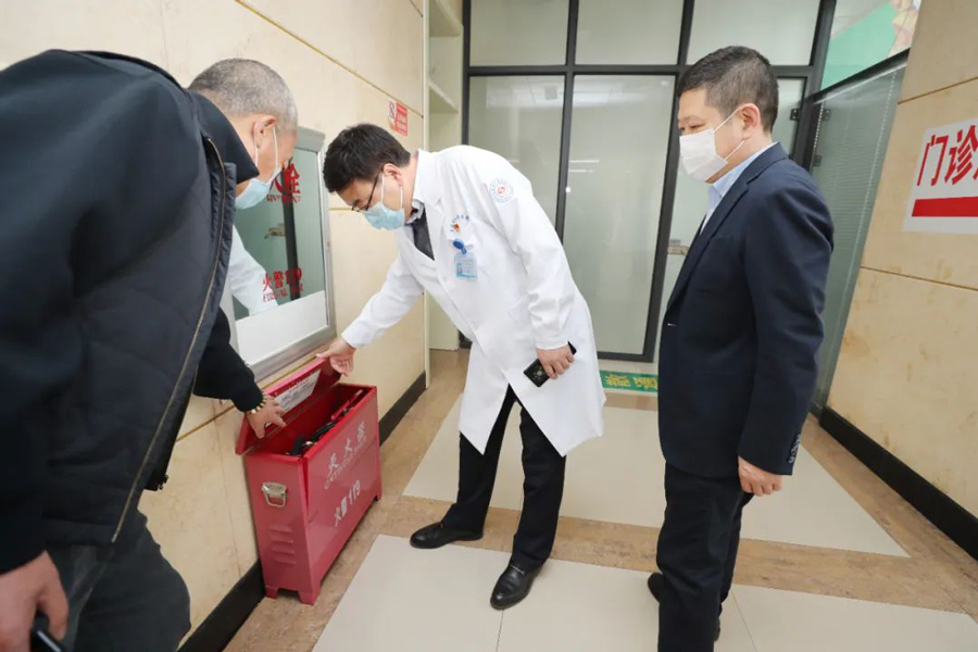 于占新副院长在现场考察了职工对灭火器操作规范的熟练掌握程度,询问了医护人员向患者宣传安全常识的情况。他要求,职工要熟练掌握灭火毯的使用方法,加强危化品的管理,尤其是严格做好酒精的使用和出库管理。