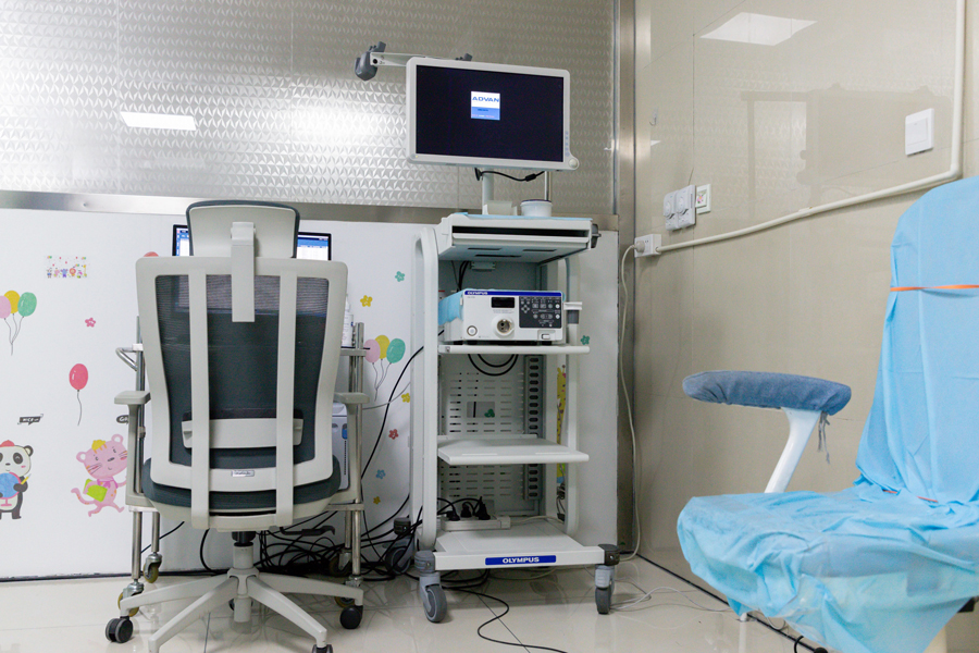 相对于便捷,耳鼻喉内镜室建在门诊,安全性更加突显。医生诊疗、会诊和协助处置等业务都集中在这里。患儿在内镜检查过程中,家长随时可以找到门诊医生交流。
