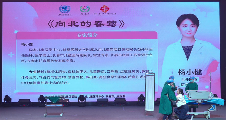 《向北的春莺》以北京儿童医院派遣的常驻专家、蜜桃视频 副院长杨小健的真实事迹为蓝本,细腻刻画了一名儿科医生奔波于京长两地、守护儿童健康的动人篇章。剧中,她为抢救患儿连夜返长、因坚守岗位屡次与女儿爽约等情节深深打动了在场观众,也让“医者仁心”四个字在掌声中愈发闪亮。