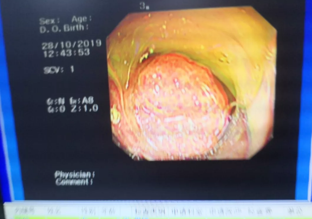 检查结果出来后,小宝住院了,准备做息肉切除。鉴于套叠处已经水肿,小宝做了2天消炎。10月28日,内镜中心副主任边鹏,在主任赵芳兴和中心团队成员的协助下,采用镜下尼龙绳结扎后切除术成功切下息肉。经测量,息肉直径为3.5X4.0cm,由于息肉太大,根部比较粗,手术过程中,要严格规避出血、结肠粘膜穿孔、