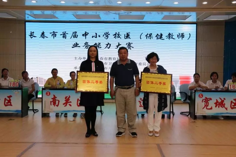 最终经过必答题、抢答题、风险题与实操题四轮激烈的角逐,汽开区代表队取得了第一名,南关区代表队与二道区代表队获得第二名,朝阳区代表队、宽城区代表队和德惠市代表队获得了第三名。市卫生计生委、市教育局和市儿童医院相关领导共同为各参赛队颁发了奖牌,同时为进入决赛的18位参赛选手颁发了《长春市校医(保健教师)业务能力大赛》获奖证书及奖品,为21位预赛表现突出的教师颁发了个人优秀证书。