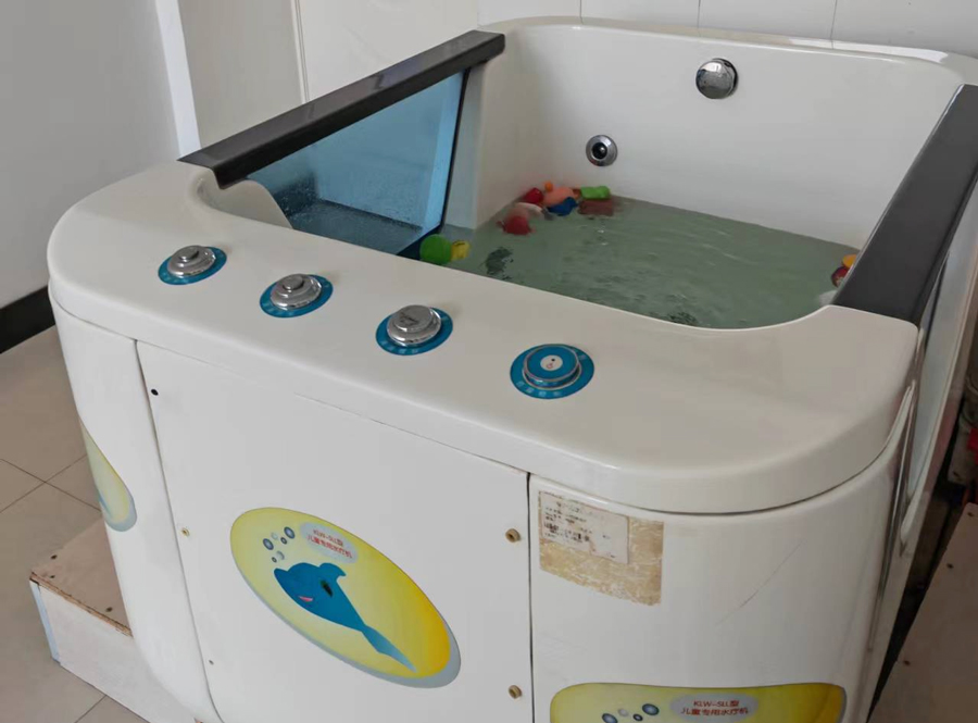 采用的是消毒净化水,利用水的温度、水静压、水的浮力和阻力,达到降低肌张力,提高运动能力,缓解肌痉挛,改善关节屈伸活动。水疗推动患儿旋转不断地改变重心,训练平衡能力。在水中可以自由进行头控训练,站立训练等;水的阻力作用有利于提升肌力及耐力,有效促进婴幼儿大脑和神经系统的正常发育。使呼吸运动加快,改善呼吸功能,提高心肺功能。适用于小儿脑瘫、关节功能障碍、异常运动姿势、发育迟缓、脑炎脑外伤后遗症、各种神经损伤等。