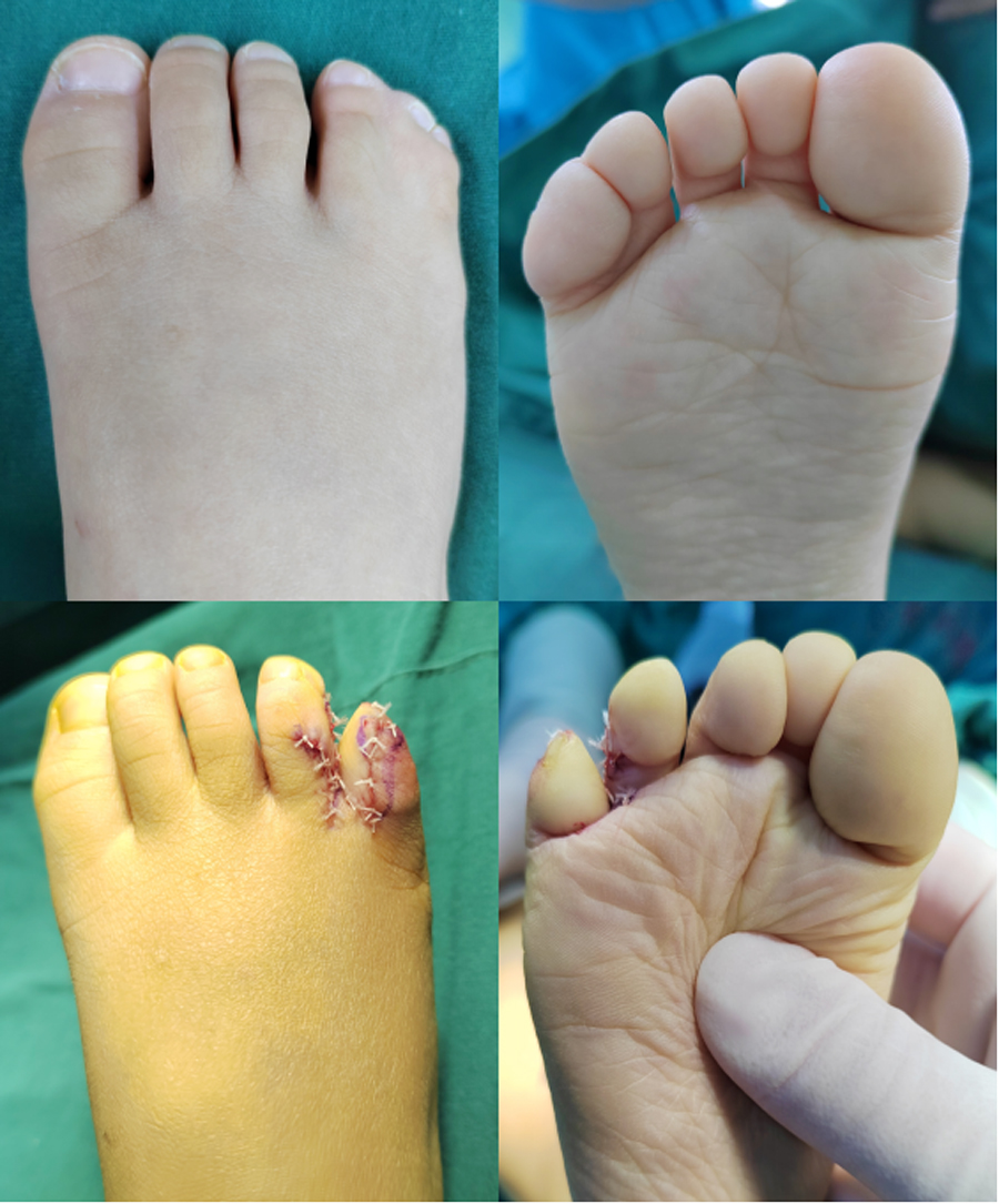 多趾并趾复合畸形,通过皮瓣转移分离,无需植皮。