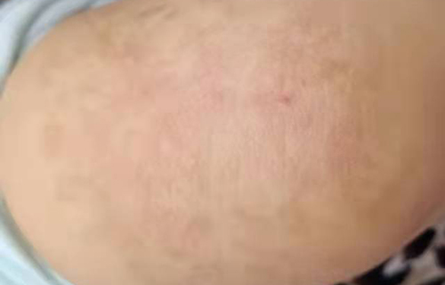 原来,松原女宝琪琪在未满月时,腿前外侧就有一块10厘米长、5厘米宽的“特殊胎记”——局部红、面积大、凹凸感不强,家长以为是“胎带的”特殊记忆,就没在意。琪琪半岁后,这个“胎记”越长越大,家长带她到蜜桃视频 就诊。检查结果为:婴幼儿血管瘤。在接下来6个月的治疗中,琪琪经过4次激光治疗和5个月局部药水涂抹治疗。如今,琪琪腿部原有的“红胎记”几近消失,只留下淡淡的色素沉着。