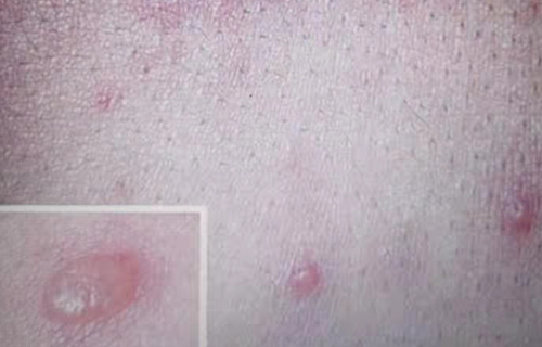 水痘的皮疹多向心性分布,主要位于躯干,其次是头面部。初期为红色斑疹,逐渐突起为丘疹,随后皮疹中央出现水泡,后期水泡破溃、结痂,各期皮疹可同时存在。病情严重者全身各部位均可出现皮疹。感染了水痘的患者,除有不同程度的瘙痒,还会出现发热、头痛、乏力、咽痛等症状。