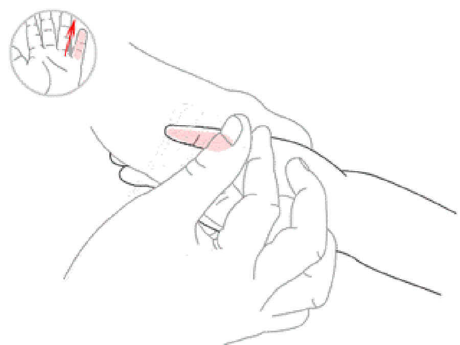 操作:一手握持小儿手部,另一手以食、中指面自腕横纹推向肘横纹1-3分钟。