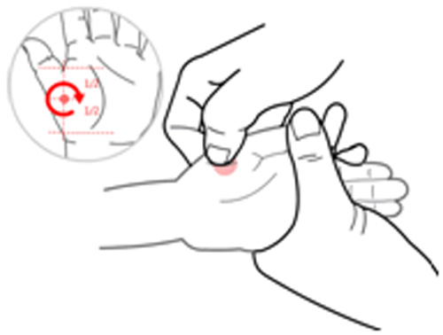 操作方法:家长用拇指指腹揉小儿板门穴,每次操作100-300次。