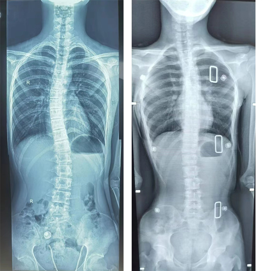 简单查体时,少年就暴露出明显的双肩不等高,弯腰做触地动作时,背部双侧不对称。X光片数据最终也证实了医生的判断:胸腰椎侧弯已达27度,相当于脊柱中段偏移了4.5厘米!“这就像正在生长的树苗突然被风吹歪了。”高凤奇主任用形象的比喻向家长解释,“好在发现及时,现在正是矫正黄金期。”